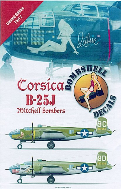 BS48002 Bombshell Decals 1/48 North-American B-25J Mitchell (2) 489th BS 340th BG 4327638/9D `Briefing Time'; 43-27653/9C `Ruthie' Corsica 1945; Pt 2