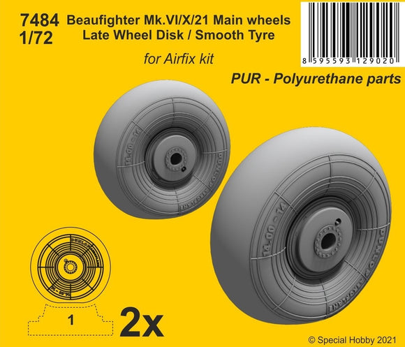 CMK7484 CMK/Czech Master Kits 1/72Bristol Beaufighter Mk.VI/X/21 Mainwheels - Late Wheel Disk / Smooth Tyre Detail resin wheels with late type hubs and weighed tyres. (Airfix kits)