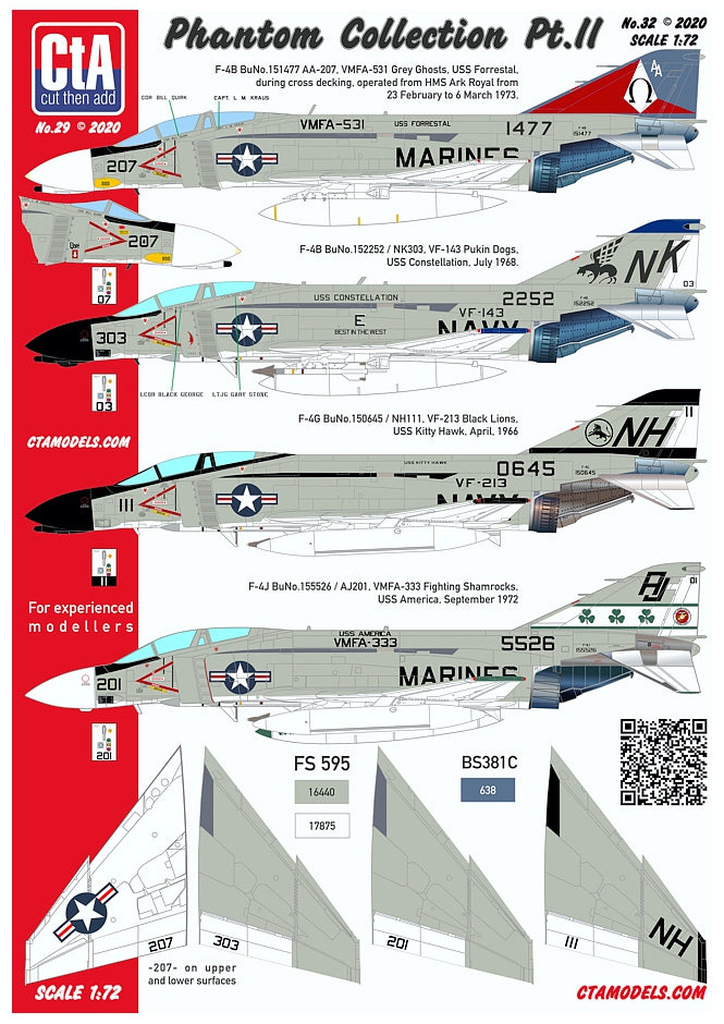 CTA-032 CtA Cut then Add 1/72 McDonnell Phantom Collection Pt.2 - F-4G VF-213, F-4J VMFA-333, F-4B VF-143, F-4B VMFA-531