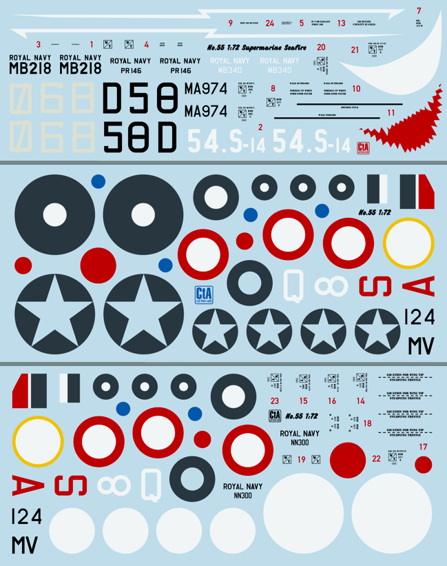 Supermarine Seafire - FAA/Fleet Air Arm , Aeronavale, 6 Markings.