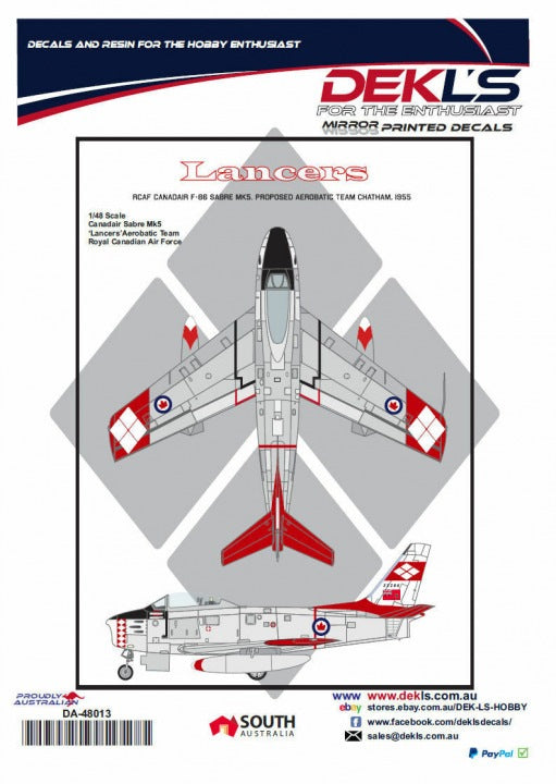 DA48013 DEKL'S 1/48 RCAF F-86 Lancers proposed aerobatic team Chatham 1955