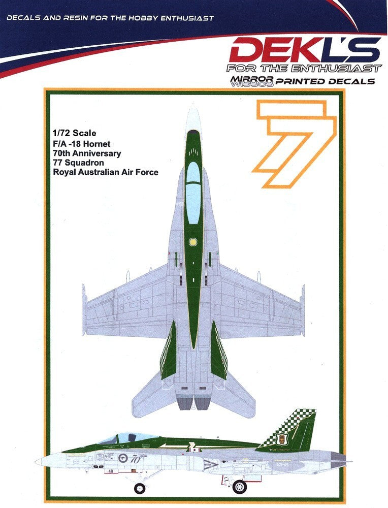 DL72019 DEKL'S 1/72 McDonnell Douglas F/A-18A Hornet, No.77 SQN RAAF 70th Anniversary
