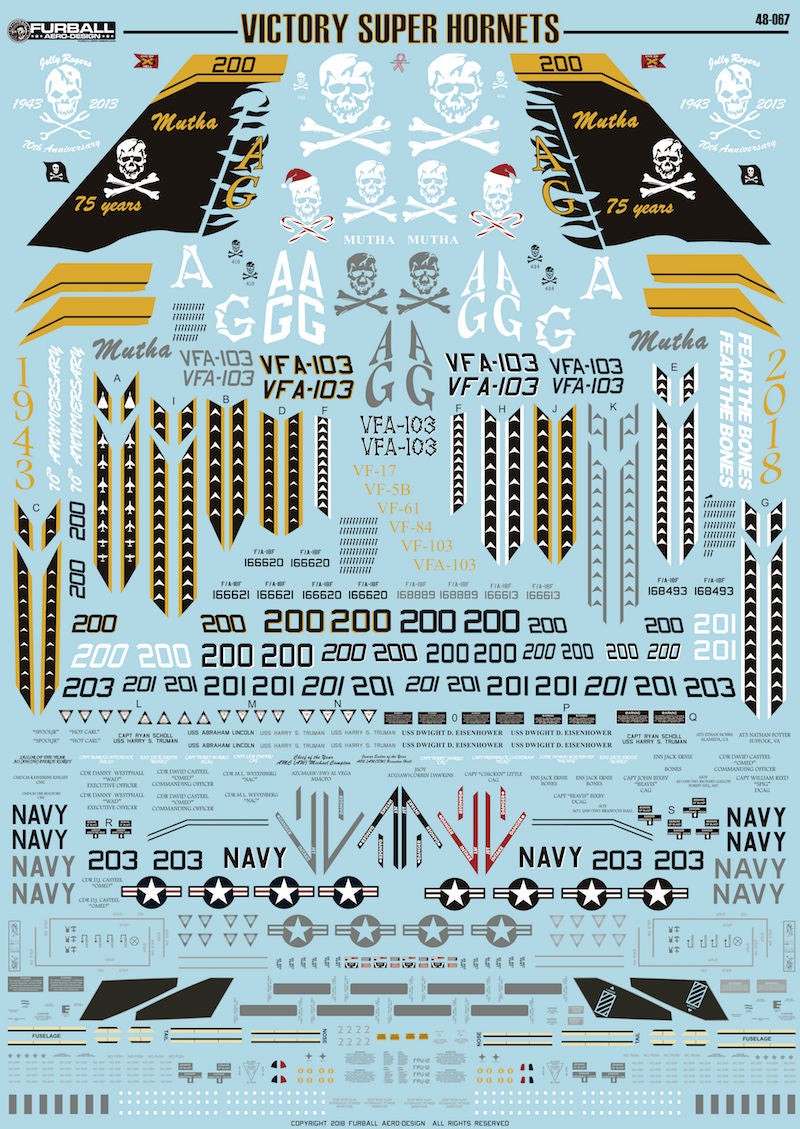 FD-48067 Furball Aero 1/48 “Victory Super Hornets" set with markings for eight VFA-103 F/A-18Fs.