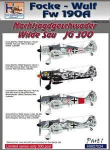 HMD72024 H-Model Decals 1/72 Jagdgeschwader JG 300 Wilde Sau, Pt.1 - Focke-Wulf Fw-190As