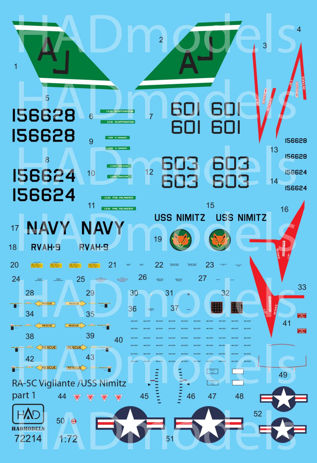 HUN72214 Had Models 1/72 North-American RA-5C Vigilante 1 / USS Nimitz with full stencil